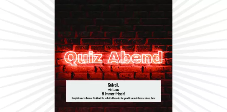 Win great prizes! Aber das ist nicht alles, oben drauf gibt’s noch ne Menge nützliches, aber auch nutzloses Wissen als Lösung von ca. 30 Fragen und versteckt in spannenden Aufgaben-Untermalt von zauberhaftem Licht und gestaltet von einer charmanten Person am Mikro. Gespielt wird in Teams, als solches könnt ihr anreisen oder ihr findet ruck-zuck neue Quizbuddies im Parkclub. War so,…